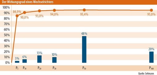 Der europäische Wirkungsgrad gewichtet also die verschiedenen Teillastwirkungsgrade gemäß ihres zeitlichen Anteils an der jährlichen Betriebszeit des Wechselrichters und ermöglicht somit die Vergleichbarkeit von Wechselrichtern unter mitteleuropäischen Einstrahlungsbedingungen. Der europäische Wirkungsgrad berechnet sich aus den Teillastwirkungsgraden wie folgt: rige gesetzliche Gewährleistung hinaus geben einige Hersteller daher bereits im Normalfall eine freiwillige Produktgarantie von fünf oder mehr Jahren, teilweise inklusive, teilweise gegen Aufpreis. Bisher erreichen Wechselrichter eine durch-schnittliche Lebensdauer von rund zwölf bis 15 Jahren.