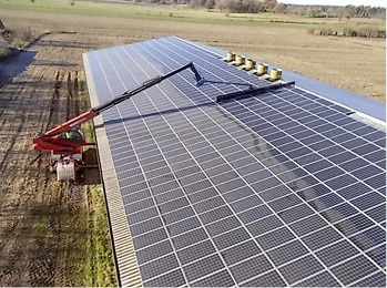 Mit dem mobilen Sun-Brush-System in Verbindung mit einem Teleskoplader reinigt das Unternehmen Solarreinigung Service Nord aus Lehmkuhlen Solaranlagen auch an schwer erreichbaren Stellen schnell und effizient. Dank mobiler Teleskoparmtechnologie und mithilfe von Hubsteigern ist eine schonende, aber dennoch gründliche Reinigung möglich, ohne die Dächer zu betreten. Die Reinigungsbürsten können an einen großen Teleskoplader und eine Betonpumpe angebaut werden.