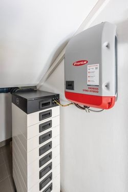 Im nächsten Schritt geht es darum, den Sonnenstrom auch in der Nacht zu nutzen. Dies wird über einen zusätzlichen Batteriespeicher erreicht. Die Energie der PV-Anlage wird in einer Batterie zwischengespeichert und steht dort zum Beispiel für die Beleuchtung oder für den Fernseher am Abend bereit.