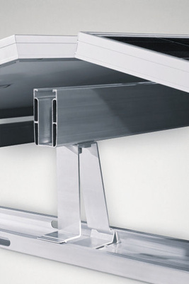 MHH bietet ein System für Anlagen mit Ost-West-Ausrichtung auf Flachdächern an. Damit kann laut Unternehmen im Vergleich zur herkömmlichen Aufständerung fast die doppelte Dachfläche mit Modulen belegt werden. Das neue System basiere auf den schon länger erhältlichen Komponenten der Produktreihe MHHnovotegra. Dabei werde die Unterkonstruktion ohne Durchdringung der Dachhaut im Kreuzschienenverband montiert. Die Grundschiene dient sowohl zur Balastierung des Systems und zur Befestigung der Modultrageschiene als auch als Kabelkanal. Der Aufständerungswinkel des Ost-West-Systems beträgt 13 Grad. Es ist laut MHH TÜV-zertifiziert, im Windkanal getestet und wird mit zehn Jahren Produktgarantie geliefert. Zudem zeigt das Unternehmen die Auslegungssoftware MHHplaner für Verschaltungstabellen mit einem und mehreren Wechselrichtern.