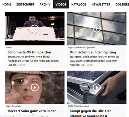Seit Sommer 2015 rollen wir auf unseren Kanälen im Internet anspruchsvolle Videos aus. Im Mittelpunkt stehen neue Produkte und Dienstleistungen für die solare Energiewende. Wir erklären die Technik und stellen Ideen vor. Auch der neue englischsprachige Kanal PV Europe wird die Videos verbreiten – für Installateure und Planer überall auf dem Kontinent.