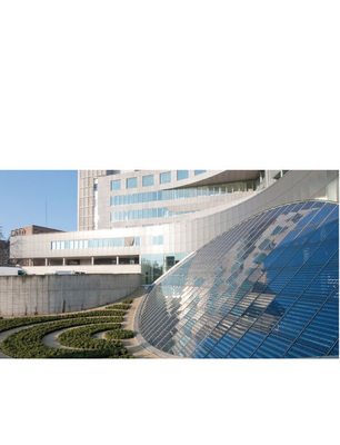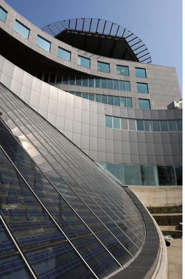Die Architekten, die das Krankenhaus entworfen und umgesetzt haben, stehen stellvertretend für viele Baumeister, die photovoltaische Bauelemente für sich entdecken. „Als Ingenieure waren wir bereits an zwei interessanten Projekten beteiligt, bei denen Photovoltaik gestalterisch und funktionell eingesetzt wurde“, sagt Kenneth Groosmann von der belgischen Planungsgruppe VK. Der Vorschlag, Solarzellen zu verwenden, kam nicht, wie so oft, vom Bauherrn, sondern von Groosmann und seinen Kollegen selbst. Die Architekten entwarfen die Eingangshalle als Atrium, das sich über mehrere Etagen erstreckt. Es wird über die schrägstehende elliptische Glasfassade belichtet.