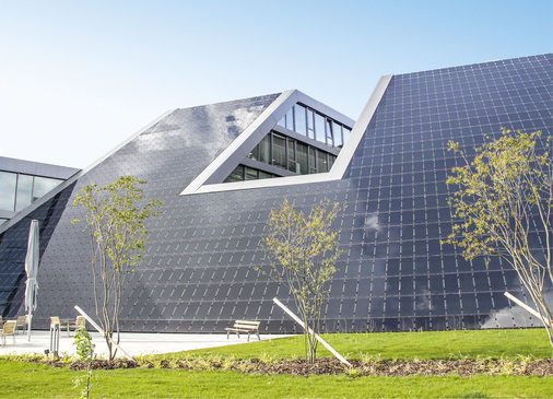 Michael Eyberg sah in der großen, homogenen schwarzen Fläche, die die Module bilden, keine ästhetische Einschränkung. Schließlich spiegeln sich seiner Meinung nach darin der Himmel und die Wolken. „Wir hatten zwar in dieser Dimension keine Referenz vorzuweisen, aber letztlich ist das, was die Architektin mit anderen Mitteln erreichen wollte, auch so eingetreten.“ Verbaut wurden schließlich Dünnschichtmodule von Würth Solar, weil die optische Homogenität einer Fläche tatsächlich besser mit Dünnschicht erreicht werden kann als mit kristallinen Modulen.