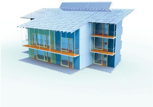 Die einzelnen Komponenten sollen so weit wie möglich in Serie vorgefertigt und im Werk zusammengefügt werden. „Dadurch können wir eine wesentlich höhere Qualität zu günstigen Preisen liefern“, erläutert Rolf Disch. „Außerdem wollen wir immer die aktuell beste Technik einbauen.“ Hierfür plant er Rahmenverträge mit Herstellern aus der Gebäude- und Solartechnik. Bei seinen ersten Häusern verwendete er Module von Siemens, Telefunken, Solar-Fabrik, Schott Solar und Isofoton. Für die neue Generation der Plusenergiehäuser ist er auf keinen Hersteller festgelegt. „Eine hohe Qualität ist das Wichtigste“, betont Disch. Gleiches gilt für die Wechselrichter und andere Komponenten. Er kann sich auch vorstellen, Kombimodule zu verwenden, die Photovoltaik und Solarthermie vereinen. „Wenn ich zusätzlich zum Strom noch Wärme bekäme, und das bei hohen Wirkungsgraden, warum nicht“, sagt Disch. „Alles, was eine weitere Verbesserung ermöglicht, ist eine Option.“ Für die Warmwasserbereitung ist eine solarthermische Anlage eingeplant, die am oberen Ende des Daches in einem steileren Winkel montiert wird. Sie kann zum Beispiel mit einer Pelletsheizung oder einem Mini-Blockheizkraftwerk kombiniert werden.
