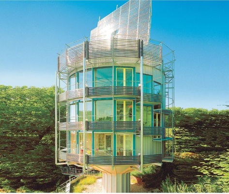 Dass Rolf Disch sein Handwerk versteht, braucht er niemandem mehr zu beweisen. 1944 in Freiburg geboren, absolvierte er zunächst eine Maurer- und eine Schreinerlehre. Nach dem Ingenieurstudium (Bautechnik und Hochbau) gründete Disch 1969 sein Büro für Solararchitektur. „Ich habe mich immer schon für gesellschaftliche Probleme interessiert“, erklärt er sein frühes Engagement für energieeffizientes Bauen. Zusätzlich motivierte ihn der Kampf gegen ein in Wyhl am Kaiserstuhl geplantes Atomkraftwerk. „Es war das erste Atomkraftwerk weltweit, das durch Bürger verhindert wurde“, erinnert er sich an die 1970er Jahre. So stieß er zu dem Kreis von Solarpionieren, die durch ihr Engagement und durch die Firmen und Institute, die sie gründeten, Freiburg zur Keimzelle der Solartechnik in Deutschland machten. 1986 überraschte Disch auf der Landesgartenschau in Freiburg mit ersten Solartankstellen. Schon diese Pavillons hatten PV-Module auf den Dächern, aus denen Elektrofahrzeuge gespeist wurden. Für Schlagzeilen rund um den Globus sorgte er aber erst, als er 1994 in das so genannte „Heliotrop“ einzog. Zehn Jahre Planungs- und Entwicklungsarbeit waren in sein erstes Plusenergiehaus geflossen. Wie ein Baumhaus ruht das zylinderförmige Solarhaus von Disch auf einer Säule. Allerdings ist sein Sockel drehbar, so dass sich das Haus immer optimal zur Sonne ausrichten kann. Die nachgeführte PV-Anlage auf dem Dach erzeugt fünf- bis sechsmal mehr Strom, als im Gebäude verbraucht wird. Was ursprünglich als Experimentierhaus gedacht war, wurde seither zweimal nachgebaut. In Freiburg gehört es heute mit der Solarsiedlung am Schlierberg und dem Sonnenschiff zu den Hauptattraktionen, nicht nur für solarbegeisterte Besucher der Stadt im Breisgau. Seit 1979 nahm Rolf Disch knapp 30 internationale Auszeichnungen für verschiedene Projekte und sein gesamtes Schaffen entgegen.