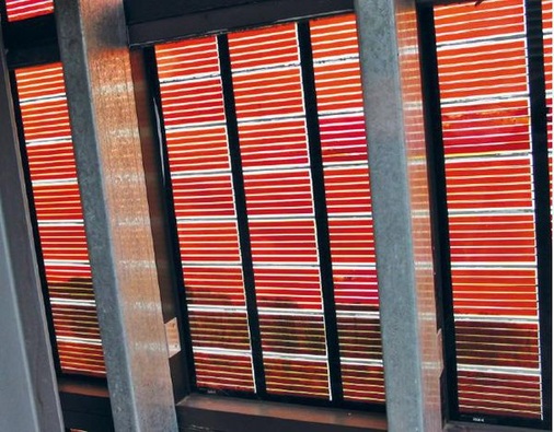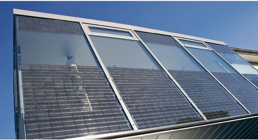 Mehr als nur ein einheitlicher Gesamteindruck lässt sich durch Glaselemente mit integrierter Photovoltaik erzeugen. Die Solarzellen können beispielsweise im Siebdruck auf Glas gedruckt werden, durch den Abstand der einzelnen Photovoltaikzellen wird eine unterschiedliche Lichtdurchlässigkeit erreicht. Die Photovoltaikgläser dienen gleichzeitig dem Wetter- und Sonnenschutz, der Schalldämmung und der ästhetischen Gestaltung. Sie können sowohl in Glasdächer als auch in Fassaden oder vorgelagerte Gebäudehüllen eingebaut werden. Gerade in Fassaden von Büro- und Industriegebäuden bieten sie sich auch als großflächige Gestaltungselemente an. Die um fünf Cent erhöhte Einspeisevergütung für Photovoltaikfassaden machen solche Lösungen zwar attraktiver. Renditegründe sollten aber nicht allein ausschlaggebend sein, meint Dieter Moor, Vertriebsleiter der österreichischen Firma ertex-solar: „Durch fehlende Standardisierung ist der Preis höher.“