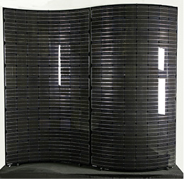 Auf der Glastecc präsentierte Sunovation ein gewölbtes Modul, das zur Fassadengestaltung eingesetzt werden kann. Die Silikon-Verbundglas-Konstruktion von Sunovation ermöglicht es, auch sehr große Module mit einer starken Wölbung herzustellen. Die Module können wahlweise konvex oder konkav gewölbt angefertigt und in der Bedruckung der Ästhetik des Fassadendesigns angepasst werden. Die Gläser sind warm verformt und benötigen zur Montage keinen Rahmen, der die Wölbung unterstützt. Das schonende Einbettungsverfahren verhindert Zellbruch. Die Module können einen Maximalradius von einem Meter haben. In der vorgestellten Ausführung sind die Module 228 Zentimeter hoch, wobei die Abmessung des Bogens 133 Zentimeter beträgt. Sie haben eine Fläche von rund drei Quadratmetern und wiegen 97 Kilogramm. Mit 112 Mono-Perc-Zellen wird eine nominale Modulleistung von 520 Watt erreicht.