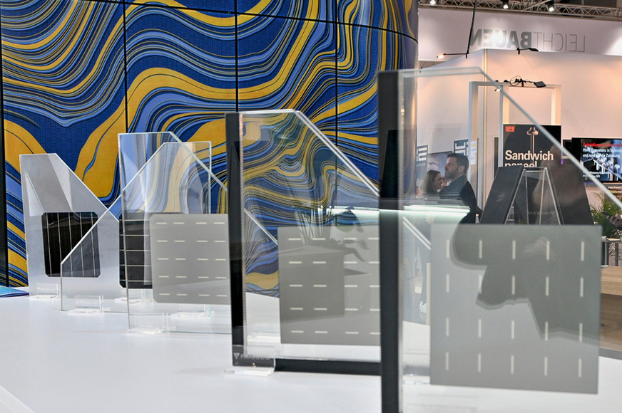 Neben weiteren Produkten für die Solarfassade, wie etwa gebogenen Modulen des Schweizer Herstellers Megasol, waren auch zahlreiche Lösungen für die Dachintegration der Solarmodule zu sehen. So hat das Unternehmen die erweiterten Möglichkeiten für den Anschluss der Solaranlage an die Dachumgebung und einen Abschluss am Ortgang und am Dachfirst gezeigt.