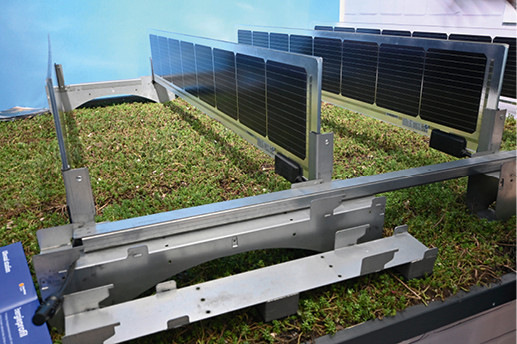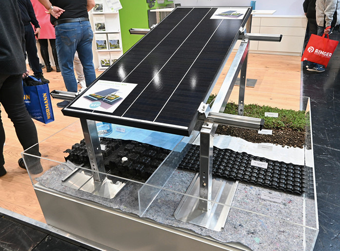 Das Unternehmen Richard Brink hat auf der Messe in München neben einer neuen Unterkonstruktion für Kantprofile auch ein neues System für das solare Gründach vorgestellt. Es baut auf dem bisherigen Flachdachsystem Miralux auf und ist sowohl in Süd- als auch in Ost-West-Aufständerung erhältlich.