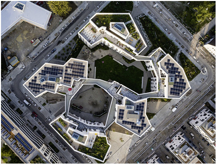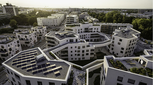 Bei der Stromversorgung fiel die Entscheidung auf Mieterstrom. Die Dachanlagen haben eine Gesamtleistung von 95,55 Kilowatt. Die HIT-Module von Panasonic wurden auf drei der fünf Gebäude montiert. Die Wechselrichter (Sunny Tripower) stammen von SMA.