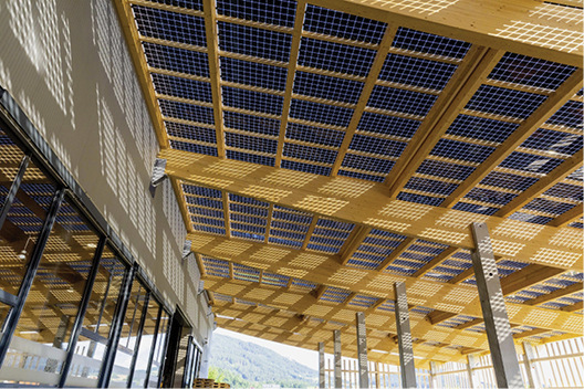 Die Module sind direkt in die Unterkonstruktion eingelassen, ohne weitere Sicherungsmaßnahmen. Dies konnten die Planer ohne zusätzliche Prüfung umsetzen, weil die Doppelglasmodule von Kioto Solar eine allgemeine bauaufsichtliche Zulassung des DIBt haben und damit als Überkopfverglasung zugelassen sind.