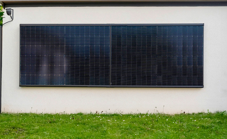 Die Module mit einer Rahmenbreite von 30 Millimetern mit den Ma- ßen von 1.762 mal 1-130 Millimeter werden horizontal in Paaren oder einzeln installiert. Das verdeckte Montagesystem besteht aus Trägerschienen, Einlege- schienen und Dübeln, die eine waagerechte Befestigung von zwei Modulen an der Wand ermöglichen. Die Anbringung erfolgt an festes Mauerwerk oder Holz mit M8-Schrauben und Dübeln.