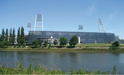Der wirtschaftliche Teil der PV-Anlage bleibt für die Stadionbesucher unsichtbar. Dafür werden die Fernsehzuschauer das Werder-Stadion bald nicht nur an den vier Flutlichttürmen, sondern auch an den dunklen, symmetrisch angeordneten Photovoltaikflächen auf dem weißen Dach erkennen. 523 Kilowattpeak in Form von Alwitra-Folien werden die Dachflächen abdichten. 199 Kilowatt der flexiblen Dünnschichtmodule sind bereits auf der Nord- und Südgeraden verlegt und ans Netz angeschlossen. Die Westkurve wird im Frühjahr 2010 folgen.