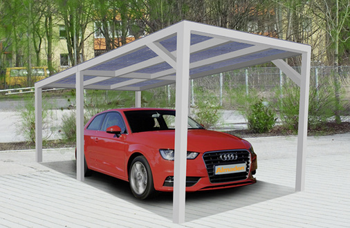 Die Firma Almaden mit Sitz in München hat ihr Angebot überarbeitet. Die gesamten Bauteile für den Carport des Herstellers können nun auch auf normalem Versandweg verschickt werden, da das längste Bauteil nur etwas über drei Meter lang ist. Der Carport eignet sich prinzipiell zum Selbstaufbau und besteht aus hochwertigen Aluminiumprofilen mit drei Millimetern Stärke. Das Gestell wurde pulverbeschichtet und hat eine Lebensdauer von 30 Jahren. Dieselbe Langlebigkeit weisen laut Hersteller die Module und sonstigen Teile auf. Der Autounterstand wird standardmäßig mit einem für den Außeneinsatz optimierten Wechselrichter geliefert. Optional sind aber auch Mikro-Inverter lieferbar. Der Anschluss einer Ladebox an den Säulen des Carports ist ebenso möglich. Lieferbar sind zwei Modultypen: Erstens transparente M40-Module mit einer Leistung von 170 Watt und einem Transparenzgrad von 40 Prozent. Die Leistung für ein System mit neun Modulen liegt dann bei 1.530 Watt. Alternativ gibt es leicht transparente P60-Module mit einem Transparenzgrad von rund zehn Prozent und einer Systemleistung mit neun Modulen von 2.250 Watt. Die Module sind an beiden Längsseiten mit einem wetterfesten Dichtungsgummi versehen.