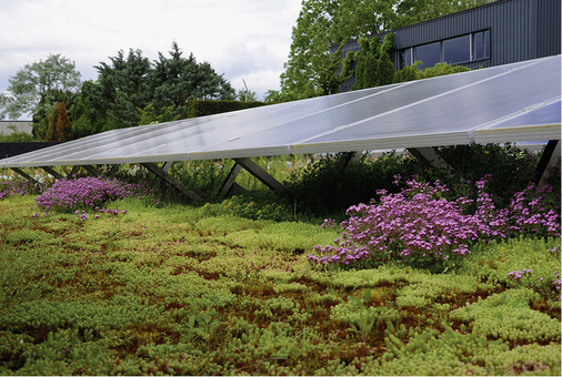 Das System Contec Greenlight ist ein Montagesystem, das speziell für die Kombination mit einem Gründach entwickelt wurde. Auf einer Kunststoffwanne, die mit Substrat für die Pflanzen gefüllt wird, werden Trageprofile aus Aluminium angebracht. Verschiedene Module können in dieses Ständersystem montiert werden.