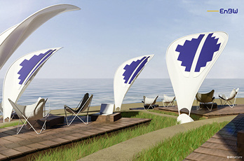 Die Verbindung aus Solarzellen, einer Batterie und einem intelligenten sowie hochwertigen Sonnenschirm macht das Solarprodukt Dalia möglich. Die EnBW testet ab sofort diese neue Idee auf der Crowdfunding-Plattform von Startnext.