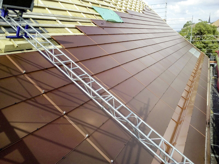 Das Indachsystem von Ernst Schweizer macht aus rahmenlosen Standardmodulen einen Solardachziegel. Es ersetzt die klassische Eindeckung von Dächern mit einer Neigung von zehn bis 70 Grad.