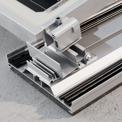 Für maximalen Komfort und Wirtschaftlichkeit verfügt das IBC AeroFix G3 Montagesystem über breite Bodenschienen mit vormontierten Bautenschutzmatten und integrierten Kabelkanälen, die bis zu 28 6 mm² Kabel fassen können. Das erleichtert nicht nur die Montage, sondern spart auch Zeit, Kosten und Aufwand. Zudem bieten die Bodenschienen eine große Auflagefläche und sorgen damit für eine geringe Flächenpressung und eine gleichmäßige Verteilung der Lasten über das gesamte Dach.