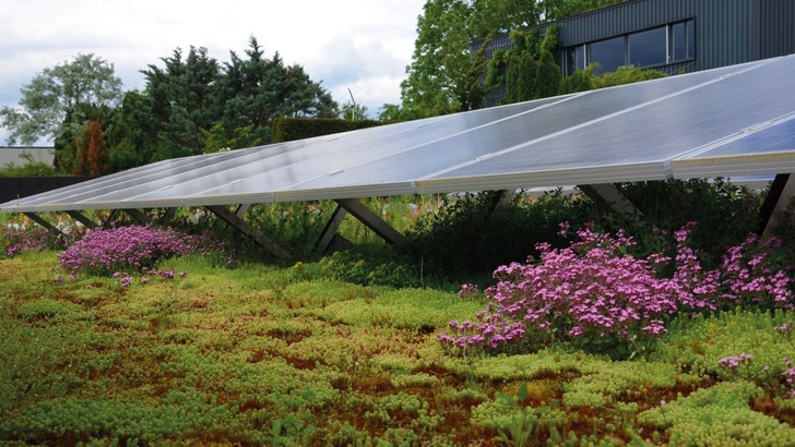 Das System Contec Greenlight ist ein Montagesystem, das speziell für die Kombination mit einem Gründach entwickelt wurde. Auf einer Kunststoffwanne, die mit Substrat für die Pflanzen gefüllt wird, werden Trageprofile aus Aluminium angebracht.