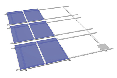 Die aerodynamische Funktionalität wird zum einen durch elf Millimeter starke Moosgummipads erzielt. Sie sind unter den Alubodenschienen des Systems bereits vorgeklebt, zeichnen sich durch hohe Reibbeiwerte aus und erlauben eine deutliche Minimierung des Ballasts. Zum anderen sorgen die konstruktiven Eigenschaften von Flat Direct durch einen Luftspalt zwischen den Modulen für eine Sogwirkung in Richtung des Daches sowie für bestmögliche Hinterlüftung.