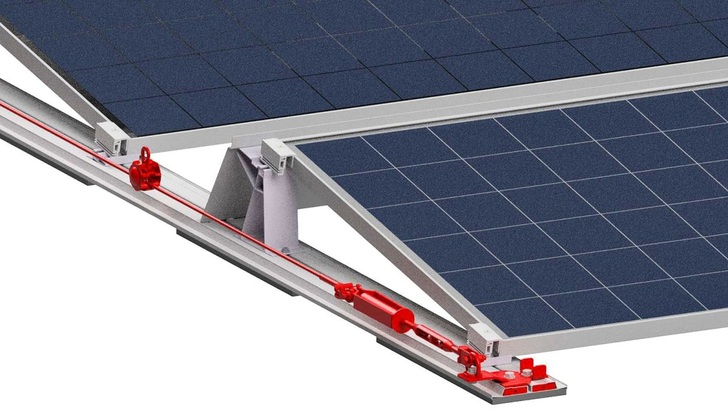 Sie ist direkt mit dem Modulfeld verbunden und ermöglicht in Kombination mit geeigneter persönlicher Schutzausrüstung gegen Absturz gute Bewegungsfreiheit um die komplette Solarstromanlage. Das Begehen des absturzgefährdeten Bereiches ist so ohne zusätzliches und aufwendiges Ein- und Aushaken möglich. Unabhängig von der Anordnung der Solarmodule lässt sich die Sicherung auf Modulfeldern mit mindestens 20 zusammenhängenden Solarmodulen anwenden.
