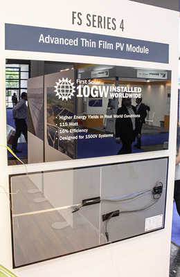 Nach Aussage von Karim Asali liegt die Effizienz der Serienmodule derzeit bei 16 Prozent. „Die Module leisten bereits 115 Watt“, bestätigte der Experte, der in Europa für die Technik zuständig ist. „Wir haben die Systemspannung von 1.000 Volt auf 1.500 Volt erhöht. Dadurch können wir 15 Module in einem String schalten statt bisher zehn Module.“
