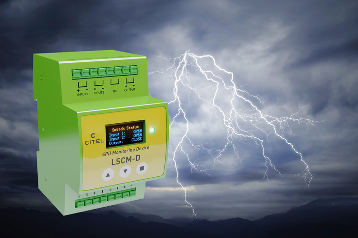 Mit dem neuen Blitzimpulszähler LSCM-D bietet Citel ein Analysewerkzeug, um Blitzeinschläge zu protokollieren. So hat der Betreiber einer Anlage sofort die genaue Information über den Zeitpunkt und die Stärke des Vorfalls. Ein OLED-Display sorgt für eine übersichtliche, gut lesbare Anzeige, auch bei schlechten Lichtverhältnissen.