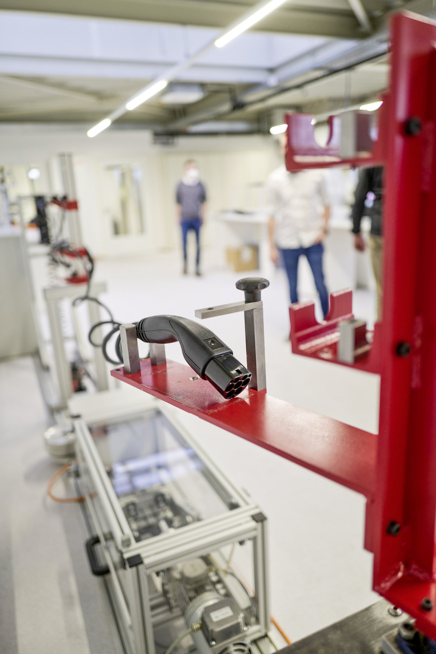 Im neuen Labor sind sechs Testingenieure beschäftigt. Hauptaufgabe sind entwicklungsbegleitende, normkonforme Tests. Sie weisen die Funktion, elektrische Sicherheit, Kälte- und Hitzebeständigkeit und mechanische Belastbarkeit der Produkte wie der Mode-3-Ladekabel, der Mode-2-Ladesysteme oder der Wallboxen nach.
