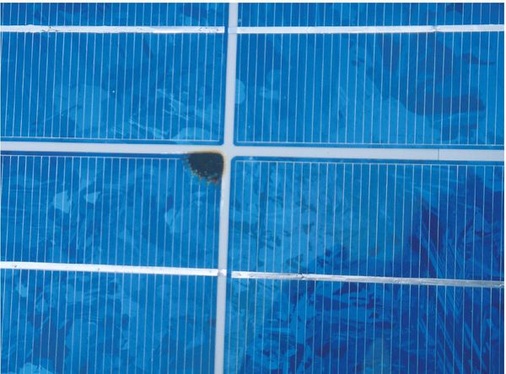 Ein Hotspot entsteht an einem hochohmigen Shunt, also an einer Stelle in der Zelle, an der, wenn auch mit einem großen Widerstand, eine elektrisch leitende Verbindung zwischen Zellvorder- und Zellrückseite besteht. Die Frage ist: Wann wird dieser elektrische Widerstand tatsächlich zum Problem für das Modul und für das System? Am einfachsten ist das am Fall einer Abschattung zu erklären: Wenn eine Zelle verschattet ist, fließt in Rückwärtsrichtung ein sehr großer Strom über diese Schwachstelle. Dadurch erwärmt sich der Shunt. Er kann so heiß werden, dass die Lamination des Moduls zerstört wird. Bei den heute gängigen Systemspannungen von bis zu 1.000 Volt führt das zu einer massiven Beeinträchtigung der Anlagensicherheit und zu einer Gefährdung von Anlangenbetreibern und Häuslebauern. Denn im Extremfall verschmort die Rückseitenisolation durch die Überhitzung, und angrenzendes Material kann Feuer fangen.