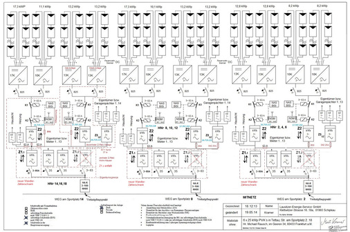 Die Kundenanlage gehört dem Gebäudeeigentümer. Das kann ein privater Vermieter sein, der einen Mehrgeschosser mit Wohnungen vermietet. Das kann eine Eigentümergemeinschaft sein oder Mischformen aus Vermietung und Eigentum. In jedem Fall gehört die Kundenanlage zum Haus. Die Eigentumsgrenze ist der Bezugszähler des lokalen Grundversorgers. Die Eigentümer des Gebäudes können die Kundenanlage selbst verwalten, inklusive Ablesung der Mieterzähler und Abrechnung. Oder sie geben diese Aufgabe an einen Messdienst ab, der wie im Falle von KES aus Schipkau auch die Photovoltaikanlage installiert hat und regelmäßig wartet.