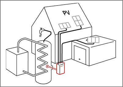 Der PV Heater besteht aus einem Heizelement und einer Steuerung. Durch drei integrierte MPP-Tracker können sechs bis zwölf Module flexibel auf dem Dach, der Garage oder der Fassade angebracht werden. Dadurch können nahezu alle Flächen belegt und Teilverschattungen berücksichtigt werden. Ebenso werden Flächen genutzt, die für herkömmliche Photovoltaikanlagen bisher nicht wirtschaftlich waren oder durch das EEG nicht gefördert wurden. Der PV Heater kann in jede bestehende Heizungsanlage integriert werden, die einen freien Anschlussflansch im Warmwasserspeicher oder im Pufferspeicher mit 1,5 Zoll hat.