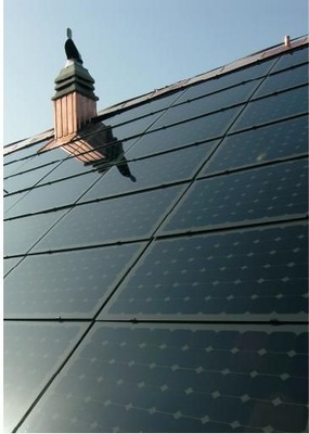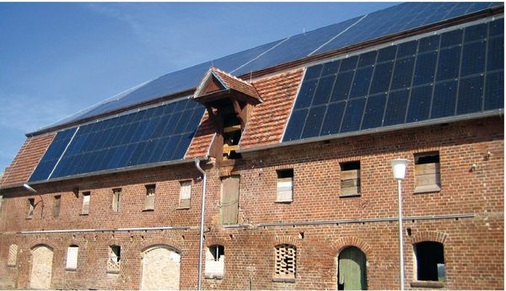 Wie gut sich PV-Anlagen und denkmalgeschützte Bauten ergänzen können, zeigt das Beispiel eines Ritterguts aus Mecklenburg-Vorpommern: Dort hat die Firma Solarworld eine Solarstromanlage mit einer Leistung von 140 Kilowatt und 1.300 Quadratmeter Fläche in die Dächer zweier 150 Jahre alter Gemäuer integriert. Solarworld bündelt seine dachintegrierten Standardmodule unter dem „Energiedach“-Konzept. Die kristallinen Module können auf nahezu alle Dach-Unterkonstruktionen montiert werden. Dazu wird auf die bestehenden Holzlatten eine zusätzliche vertikale Lattung angebracht, auf die Aluminiumprofile geschraubt werden. Darauf werden Auflagegummis angebracht, die dann die mit Klemmgummis befestigten Laminate tragen.
