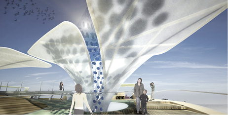 Die Franken werden mit ihren Folien sogenannte Solarbäume auf dem Pavillon bestücken. „Diese Solarbäume verbinden Innen- und Außenraum, Architektur und Ausstellung miteinander und spenden gleichzeitig Schatten während der heißen Expo-Monate“, erklärt Lennart Wiechell die Idee. Er ist leitender Architekt und Managing Partner beim Münchener Architekturbüro Schmidhuber, das den Pavillon entworfen hat. „Wir hatten dabei die Möglichkeit, nicht nur eine existierende Technologie zu verwenden, sondern bis hin zum optischen Erscheinungsbild der Module alles zu gestalten und so in das Gesamtdesign einzugliedern.“