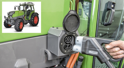 Der elektrische Traktor verfügt über 50 Kilowatt Antriebsleistung, mit denen er bis zu fünf Betriebsstunden unter realen Einsatzbedingungen arbeiten kann. Die Energiequelle ist eine 650-Volt-Lithiumbatterie mit einer Kapazität von rund 100 Kilowattstunden. Das ist noch etwas mehr als ein Tesla Model S mit 85 Kilowattstunden. Geladen wird laut Fendt entweder mit 400 Volt Spannung und bis zu 22 Kilowatt Leistung über eine genormte CEE-Hofsteckdose oder über einen Supercharger mit Gleichspannung. Mit einem genormten CCS-Typ-2-Stecker kann so die Batterie schon in 40 Minuten bis zu 80 Prozent wieder aufgeladen werden. Zudem kann durch den Elektromotor im Betrieb Energie rückgewonnen werden.