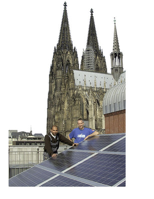 Jemand hat Jonathan Horowitz erzählt, das Kölner Museum Ludwig sei das Gebäude mit dem höchsten Energieverbrauch der Stadt. Daraufhin hat er beschlossen, dass seine Arbeit die von ihr benötigte Energie selbst erzeugen muss. Die Suche des Museums Ludwig nach einem geeigneten Kooperationspartner endete bei der Energiebau Solarstromsysteme GmbH in Köln-Ossendorf. „Da wir zu den Gründungsmitgliedern der Initiative ‚Photovoltaik in NRW‘ gehören, ergab sich so ein unbürokratischer Kontakt“, sagt Pressesprecher Timo Glatz. Für die Dauer der Ausstellung, die noch bis zum 23. August zu sehen ist, stellt die Firma Horowitz eine PV-Anlage mit knapp 1,6 Kilowatt zur Verfügung. „Es ging hier natürlich nicht darum, eine möglichst große Anlage zu bauen, sondern darum, in einem ungewöhnlichen Umfeld ein klimapolitisches Zeichen zu setzen. Das Schöne ist ja, dass die Anlage nicht auf dem Dach verschraubt ist, sondern auf der Museumsterrasse für jeden Besucher zum Anfassen bereit steht.“