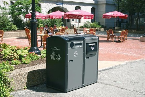 Im Hofgarten hat die Bayerische Schlösserverwaltung den ungewöhnlichen Müllschlucker von der Firma CSE Clean Solution aufstellen lassen. Kurz darauf war bei den Kaffee konsumierenden Größstädtern ein merkwürdiges Verhalten zu beobachten: Statt am nächstbesten Eimer en passant ihre Treffsicherheit zu trainieren, standen sie Schlange, um ihren Müll ordnungsgemäß zu entsorgen. Der Vorgang an sich ist bei BigBelly Solar zwar nicht andersals bei allen anderen Mülleimern im Stadtgebiet: Man wirft den Abfall hinein. Aber dann wird es interessant. Jeder Einwurf wird von Sensoren registriert. Die Tonne kann dann nicht nur den Aufwand mit einem Danke oder einem Tusch belohnen, sondern außerdem dank eines rabiaten Innenlebens – ein Sechstel Pferdestärke, 780 Kilogramm Pressdruck – den eingeworfenen Müll auf einen Bruchteil seiner vorherigen Größe zusammenquetschen. Eine LED-Anzeige in der Nähe der Einwurföffnung signalisiert den aktuellen Füllstand. Und wenn dieser sich dem oberen Rand nähert, meldet sich BigBelly via SMS oder Mail bei dem zuständigen Entsorgungsunternehmen und bittet um Leerung.