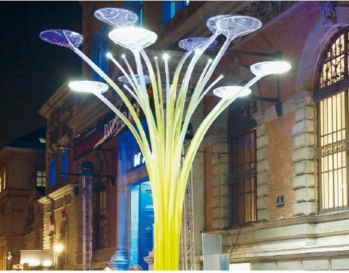 Der Solarbaum soll hauptsächlich auf Boulevards strahlen. Tagsüber lädt sich er sich mit der Energie der Sonne auf, um nachts die Straßen in ein zauberhaftes Licht zu tauchen. Der Solar Tree ist eine Zusammenarbeit zwischen Lovegrove, dem italienischen Lampenhersteller Artemide und Sharp Solar. Insgesamt 360 PV-Zellen krönen die zehn Äste der über fünf Meter hohen urbanen Leuchte. Ein Sensor sorgt dafür, dass bei Sonnenuntergang das Licht aktiviert und bei Sonnenaufgang wieder ausgeschaltet wird.
