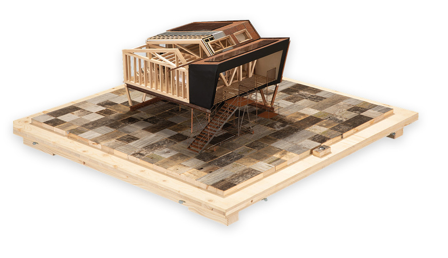 Um zu demonstrieren, wie diese neue Art des Bauens aussehen kann, erstellt das Team beim Solar Decathlon ein Konzept für die Dachaufstockung des Café Ada in Wuppertal. Die Gestaltung des Gebäudes basiert auf den drei Säulen der Nachhaltigkeit: Ökologie, Ökonomie und Soziales. Das Roofkit-Team ergänzt das noch um eine vierte Säule: Ästhetik, denn auch das Auge will überzeugt werden. Im Konzept stellt das Team vorgefertigte Holzmodule vor. Der Vorteil: Sie ermöglichen einen schnellen, preisgünstigen und effizienten Bauprozess. Für eine optimale Raumnutzung verwenden sie flexible Grundrisse und ein Konzept aus der Sharing-Economy, wie es neudeutsch heißt.