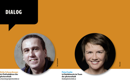 Franke: Das spiegeln auch die Themen in unserem Heft. Vor allem Speicher fürs Gewerbe, die es im Moment noch schwer haben, werden den Markt erobern. Unsere Titelstrecke in dieser Ausgabe stellt die vielfältigen Innovationen vor. Und das photovoltaik -Team bietet den Fachbesuchern echten Mehrwert.