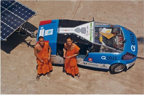 Der Schweizer ist überzeugt, dass er mit seinem Konzept einen Beitrag zum Klimaschutz leisten kann. Er will der Welt zeigen, „wie viele ausgereifte Lösungen zur Senkung von Treibhausgasen es schon gibt“. Seine Aktion lässt er sich von namhaften Sponsoren bezahlen, deren Logos über dem ganzen Auto verteilt sind. Und wer nicht vor Ort dabei ist, kann in seinem Internetblog lesen, wie er zum Beispiel den Kampf mit Schlaglöchern in Laos ausficht.