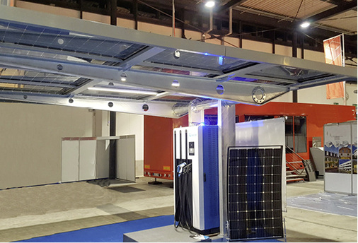 Der Freiburger Indachanbieter Clickcon kombiniert sein Click-Park-System nun mit einer Schnellladestation. Das aufeinander abgestimmte System heißt schlicht und einfach „Charge“.