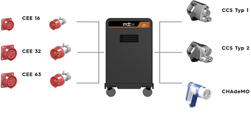 Dank der Möglichkeit, vorhandene Stromanschlüsse zu verwenden, empfiehlt sich das Schnellladegerät auch als Begleiter für Demonstrationen von Fahrzeugen. Von Designwerk selbst wird das Gerät bereits zum Laden eines eigens entwickelten 26-Tonnen-Elektro-Lastwagens verwendet. Ein weiteres Modell der Linie behauptete sich zuvor im Einsatz bei einer Weltumrundung mit einem Tesla Model S. Der Ansatz von Designwerk, alle gängigen internationalen Ladestandards abzudecken, schafft Spielraum beim Einsatz in Garagen oder Flottenbetrieben. So können Fahrzeuge mit Steckern für CCS1, CCS2 sowie Chademo mit Gleichstrom geladen werden. Mit einem einzigen Gerät lässt sich auf diese Weise eine breite Palette von Elektrofahrzeugen betanken.