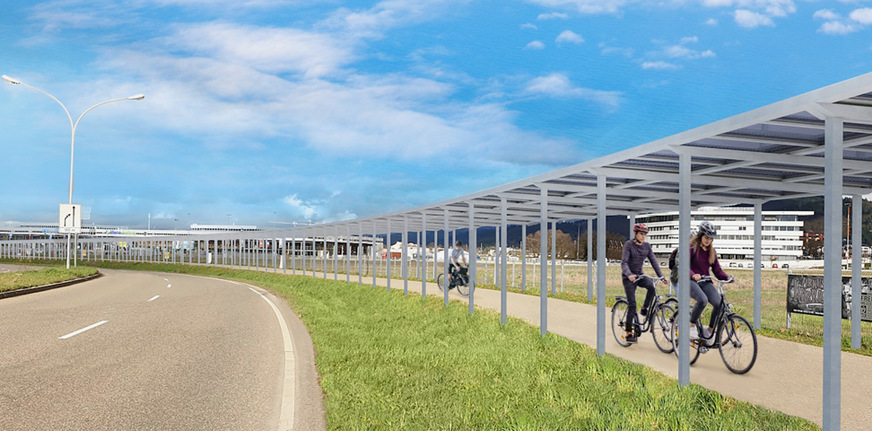 Entsprechend plant das Unternehmen, auch hier Module von Solarwatt einzusetzen – in diesem Fall die Vision-Construct-Paneele aus Dresden. Für die Integration der Module nutzen die Planer dann das Montagesystem von Clickcon. Es ist für die Integration von Solarmodulen in solare Parkplatzüberdachungen perfekt geeignet und die Neuentwicklungen machen die Umsetzung solcher Projekte noch einfacher und ästhetischer.