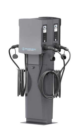 Mit der Wallbox Smart Evo Duo der Walther Werke können zwei Fahrzeuge gleichzeitig geladen werden. Dazu ist sie mit zwei Ladepunkten ausgestattet, deren Leistung individuell einstellbar ist – bis zu 22 Kilowatt pro Ladepunkt. Um den Aufbau einer passenden Ladeinfrastruktur für Flotten und unternehmenseigene Fuhrparks unterschiedlicher Größen zu realisieren, kann die Anzahl der Ladepunkte je nach Bedarf flexibel skaliert und auch jederzeit auf bis zu 250 erweitert werden.