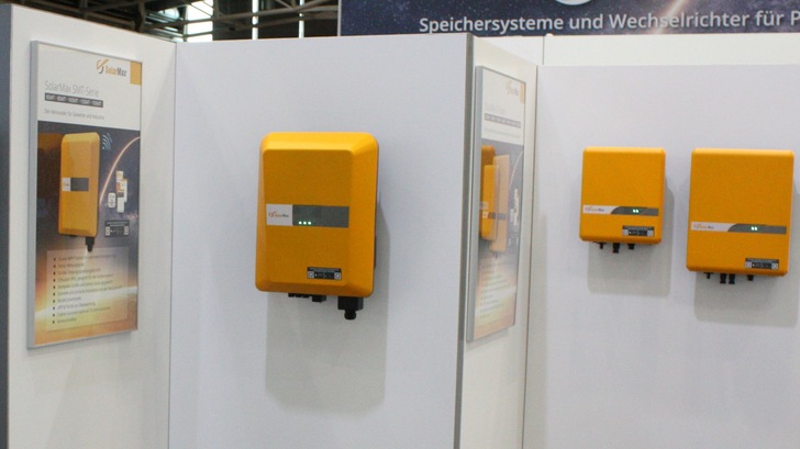Die auf der Intersolar präsentierte SMT-Serie von Solarmax ist seit Juni auch lieferbar, erklärte das Unternehmen. Dank hoher Eingangsspannung von 1.000 Volt ließen sich besonders lange Strings ohne Leistungsverluste bauen.