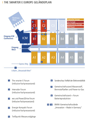 Das Forum The smarter E Europe befindet sich in Halle B2, Stand 570. Am ersten Messetag werden hier um 17:00 Uhr die Preisträger der verschiedenen Awards gekürt. Am Donnerstagvormittag findet am selben Ort die Preisverleihung des Energiewende-Awards für Energieversorger statt sowie am Nachmittag die Veranstaltung des Deutsch-französischen Büros für die Energiewende, die neue Modelle für eine intelligente Netzintegration von Photovoltaik im urbanen Raum in Deutschland und Frankreich zum Thema hat. Am Freitag werden hier neue Geschäftsmodelle durch dezentrale Handelsplattformen vorgestellt und diskutiert.