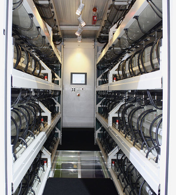 Blick in das Innere eines großen Cell Cube: Das Prinzip der Redox-Flow-Batterien unterscheidet sich prinzipiell von Bleiakkumulatoren oder Lithium-Batterien.
