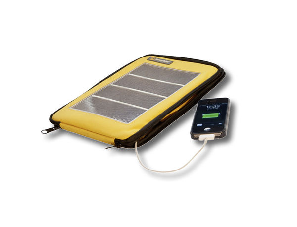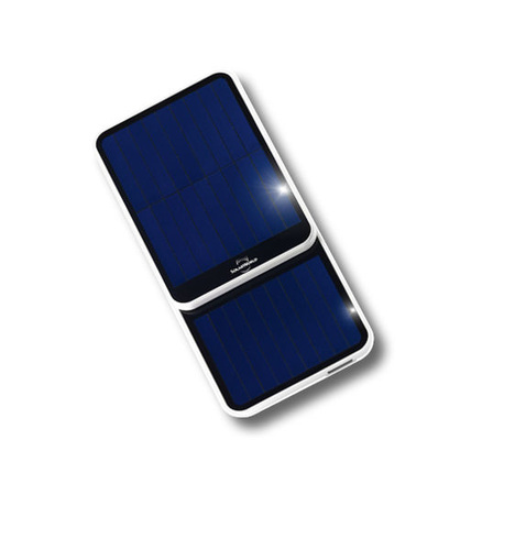 Der Suncharger von Solarworld hat neben seinem ansprechenden Design auch technisch einiges zu bieten. Er vereint Netzteil, Ersatzbatterie und Solarzelle in einem Gerät. Ist eine Steckdose in der Nähe, können Sie den Suncharger direkt in die Steckdose stecken und Ihr Handy über den integrierten USB-Stecker aufladen wie bei einem herkömmlichen Ladegerät. Nebenbei wird dabei auch der Akku geladen, der Ihre mobilen Geräte versorgt, wenn keine Steckdose in der Nähe ist. Der Akku kann auch über die 30 integrierten monokristallinen Solarzellen aufgeladen werden. Anders als bei anderen Geräten dieser Art ist die Fläche der Solarzellen recht groß, durch das Öffnen der Schiebevorrichtung lässt sie sich beinahe verdoppeln. Auch wurde ein laminiertes Solarmodul verbaut. Gegenüber vergossenen Modulen weist seine Moduloberfläche eine verlängerte Lebensdauer auf. Die Kapazität der internen Lithium-Polymer-Batterie beträgt 1.300 Milliamperestunden und circa 500 Ladezyklen.