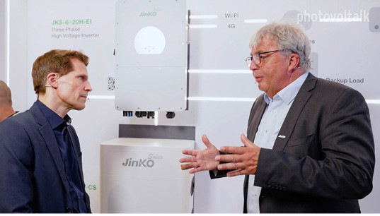 PV Guided Tours: Jinko Solar kam mit neuen Solarmodulen und Batteriespeichern nach München. Viel hat sich bei den Zellen getan, ihre Herstellung ist umweltfreundlicher geworden. Roman Giehl, Senior Technical Manager RESS, erläutert die Strategie.