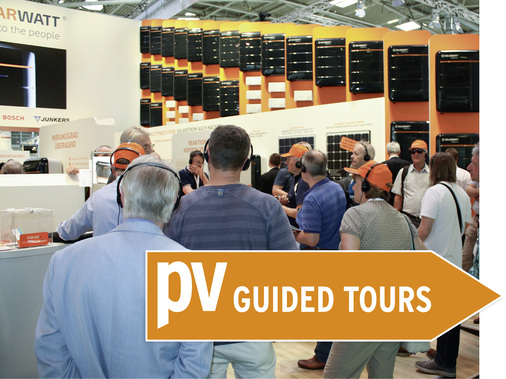 Die themenbezogenen Rundgänge werden in deutscher und englischer Sprache angeboten. Start ist am Messestand der photovoltaik und PV Europe (Halle B1, Stand 209). Die Teilnahme erfolgt nach vorheriger Anmeldung.